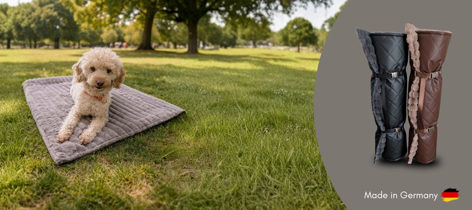 Wasserresistente Materialien wie Wooflex und Biothane bleiben auch bei Regen geschmeidig und hygienisch.